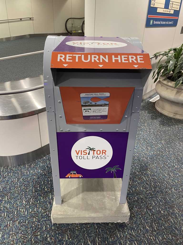 If you have rental car status like Hertz President’s Circle, you’ll drop your car in the parking lot, skip the counter, and walk straight into Terminal A where you’ll see a receptacle inside for dropping your Visitor Toll pass.